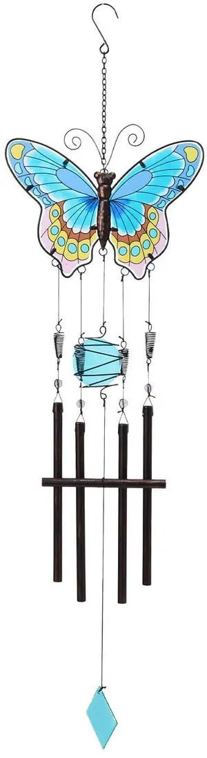 Butterfly Wind Chimes for Outside, Stained Glass Wind Chime Windchimes for Patio, Outdoor,Garden,Yard,Coastal,Window,Home Decor or Gifts for Women(Colorful)
