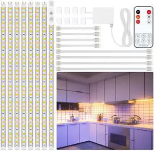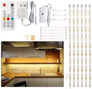 Under Cabinet Lighting Kit - 8 PCS 20 Inch Pre-Cut Strips, 2700K Warm White Flexible LED Strip Lights with Remote and Power Adapter for Kitchen Cabinets, Shelf, Desk, Counter - 13ft