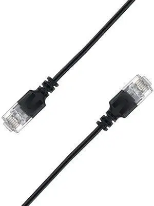 Elfcam - 25m/82ft Ultra Slim Cat 6A Ethernet Cable 10Gbps 32AWG UTP OD2.8mm 500MHz, 10Gb Thin RJ45 Cat 6A Patch Cord for LAN, Router, Modem, Xbox, Laptop and Servers, Black, 25 Meters