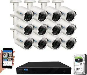 GW Built-in microphone PoE IP Security System, 16CH 4K H.265 NVR with 12 x 5MP 1920P IP Camera, Day/Night Weather Proof, Video Audio Power All Thru One Ethernet Cable, 4TB
