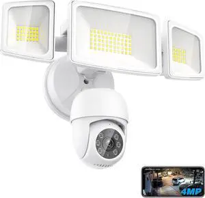 24/7 Recording Solar Floodlight Security Camera Wireless Outdoor, Motion-Activated Alert/2000LM Floodlight/105dB Siren, WiFi, 2K, HD Live View/Talk, 360° Pan & Tilt, Free Local 128GB Storage