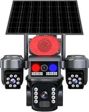 360 degree panoramic three screen solar security camera, wireless WiFi/4G pan tilt monitoring, IP66 waterproof, artificial intelligence human detection, color night vision, TF memory card support
