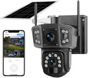 Solar Security Camera Wireless Outdoor, WiFi PTZ Security Camera with Dual Lens, PIR Motion Detection & Alerts, Night Vision, 2 Way Audio, 360° View, SD/Cloud Storage