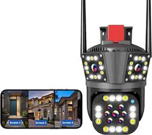 Dpofirs 2.4GHz WiFi Security Camera with Three Lens, AI Motion Detection for Front and Back, 360 Degree Coverage, Solar Camera