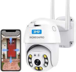 INQMEGAPRO Security Camera Outdoor, 2K 3MP Wireless WiFi IP Camera Home Security System 360° View,Motion Detection, auto Tracking,Two Way Talk, Pan Tilt Full Color Night Vision