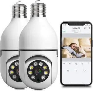 360 Degree Security Cameras Wireless Outdoor, 2.4GHz& 5GHz Wifi Light Bulb Camera, 1080p for Home Security, Indoor Camera System, Motion Detection, Two-way Audio (2Pack), 2 Count (Pack of 1)