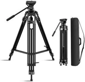 SIRUI Heavy-Duty Video Tripod with Fluid Head Durable Aluminum Alloy Construction, Adjustable Height for Smooth Video Recording, Stable Support 22.0lbs for Cameras & Camcorders(AVT-02)