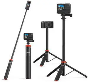 UURig Telescopic Selfie Stick Long with Tripod, Waterproof Hand Grip, for Insta360X5/X4, GoPro Hero 13 12 11 10 9 8 7 6 5 4 3 2, Fusion, Max, Session, AKASO, SJCAM, DJI OSMO Action 6/5Pro/4/3 GoPro