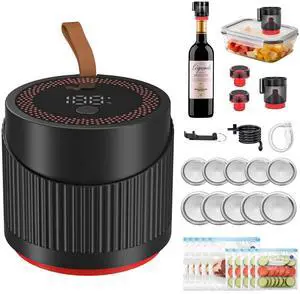 Electric Mason Jar Vacuum Sealer kit 3-in-1 Portable Vacuum Sealing for Jars Lids, Bags & Containers | Ideal for Fresh Produce, Dry Foods, Meats & Meal Prep (Black)