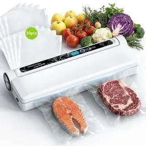 Vacuum Sealer Machine 95KPA Powerful Suction, 10s Fast Seal, Dry & Moist Modes, Compact Food Vacuum Sealer with 30 Bags Included, Automatic Food Saver for Meal Prep, Sous Vide & Kitchen Storage