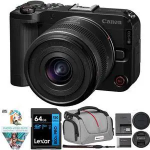 Canon EOS R50 Mirrorless Camera w/ RF-S 18-45mm F4.5-6.3 Lens + 64GB Memory Bundle