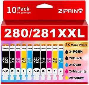 ZIPRINT High Capacity 280 281 XXL Ink Cartridge 10 Pack Replacement for Canon 280 281 Ink Cartridges Compatible with Canon TR8620a TS9521C TS8220 TR8620 TR8520 TS702a TS7520 TS6220 Printer Ink