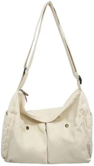 GAXOS Aesthetic Cute Messenger Bag for School Vintage White Canvas Crossbody for Women Shoulder Laptop Bag