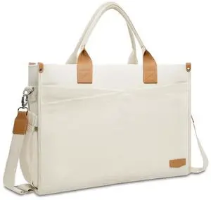 MOSISO Laptop Tote Bag for Women, 15-15.6 inch Canvas Laptop Bag, Large Capacity Work Computer Shoulder Handbag with Cup Holder for Travel, Office, College, Beige