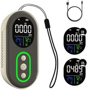 CO2 Monitor Indoor Air Quality Meter, Temperature, Humidity Display, Portable Carbon Dioxide Meter for Home, Car, Office or School