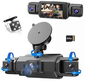 360° 3 Channel Dash Cam Front Left Right, Dash Camera Night Vision+Rear Camera
