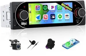 Single Din Touchscreen Car Stereo with Wireless Carplay&Android Auto,5.1 Inch Car Radio MP5 Player with Bluetooth FM Radio EQ Car Audio with USB/Type-C SWC+Backup Camera