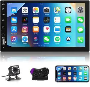 2025 Double Din Car Stereo Player Compatible with Apple Carplay & Android Auto 7 Inch Car MP5 with BT^^ Mirror Link^^ HD Backup Camera^^ USB/SD/AUX Input^^ AM/FM/Car Radio^^ SWC^^ Subwoofer^^ Fast Ch