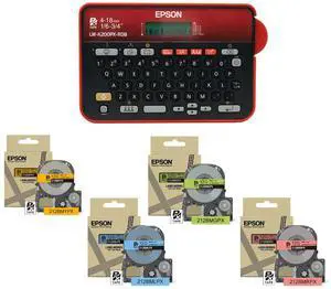 LABELWORKS Epson LW-K200PXRDB Printer and Primary Tapes - Label Maker and Primary Colored Matte Label Tapes