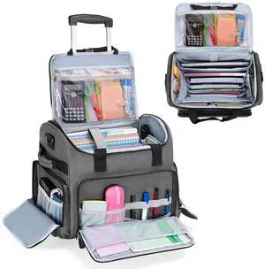 CURMIO Rolling Teacher Bag, Rolling Cart for Teachers with Wheels, Large Teacher Tote Bag for Women, Gray(Patented Design)