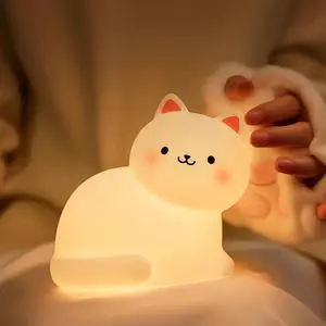 Cat Night Light for Kids,7 Colors Lamp,Tap Dimmable,Rechargeable Portable and Squishy Silicone Led Nightlight,Kawaii Gift,Timing Bedside Lamp,Nursery,Toddler,Breastfeeding,Kids Room Decor,Birthday- Brand: lurk deep