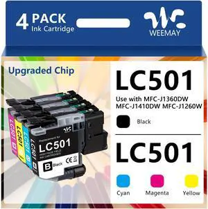 Weemay LC501 Ink Cartridge LC501BK LC501C LC501M LC501Y Standard Yield Compatible for Brother LC501 XL Ink Cartridge for Brother MFC-J1260W MFC-J1360DW MFC-J1410DW Printer (Black,Cyan,Yellow,Magenta)