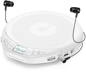 CD Player Portable CD Dsicman: with Earphones for Car with Anti-Skip Shockproof with LCD Display Support PROG Memory Repeat Function (White)