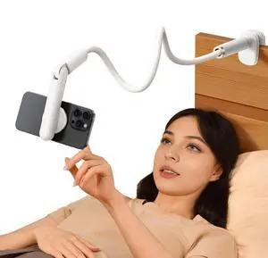 Gooseneck Tablet Mount Holder for Bed - Flexible Tablet Arm Clamp, Bed Stand for 4.7-10.6" Devices, Such as iPad Mini 7.9, Air 9.7, Pro 10.5, Switch, Galaxy Tabs - White
