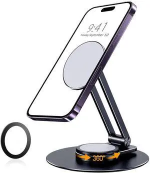 Magnetic Phone Stand, MagSafe iPhone Stand Holder for Desk with 360° Rotating Metal Base, Foldable Cell Phone Stand Compatible with iPhone 17 16 15 14 13 12 Pro Max and MagSafe Case