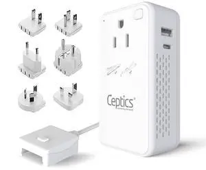 Ceptics World Travel Adapter Kit 2 USB-A, USB-C US Outlets, 20W/QC 18W Power Delivery, Surge Protection, SWADAPT Compatible for Europe, UK, China, Australia, Japan Perfect Laptop (WPS-5B)