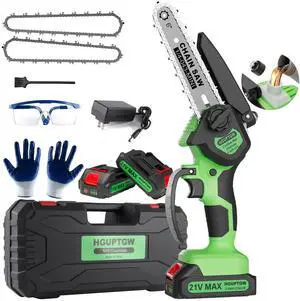 6 Inch Cordless, Super Handheld Chainsaw with 2x Big Batteries, Electric Mini Chain saw Battery Powered, Small Hand saws for Tree Wood - Garden Yard Time Saving Tool