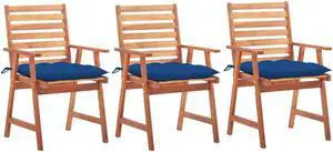 vidaXL Patio Dining Chairs 3 Pcs Outdoor Chair with Cushions Solid Wood Acacia