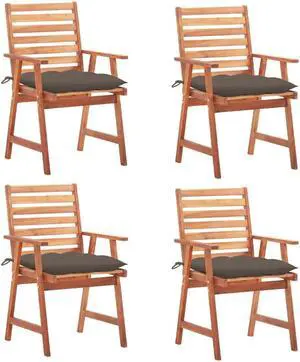vidaXL 4x Solid Acacia Wood Patio Dining Chairs with Cushions Dinner Chair