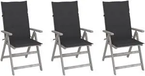 vidaXL 3x Solid Acacia Wood Patio Reclining Chairs with Cushions Wooden Chair