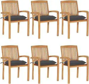 vidaxL 6x Solid Teak Wood Stacking Patio Chairs with Cushions Garden Seat