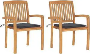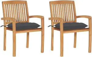 vidaXL 2x Solid Teak Wood Patio Chairs with Anthracite Cushions Garden Seat