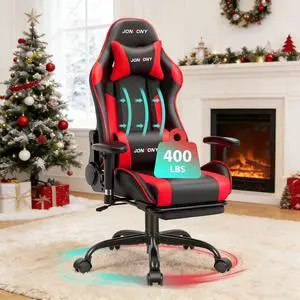 JONPONY Game Chair,Ergonomically Designed Computer Chair with headrest and 2D Armrests,with Footrest and Lumbar Support,High Back Office Chair Support 8 Hours Long Sitting,Computer Chair,BLACK RED