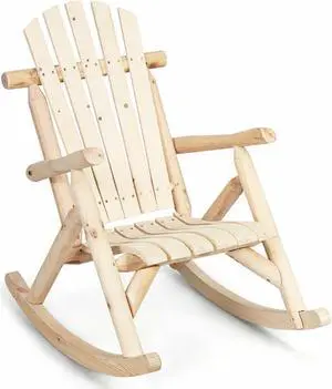 Costway Log Rocking Chair Wood Single Porch Rocker Lounge Patio Deck Furniture Natural