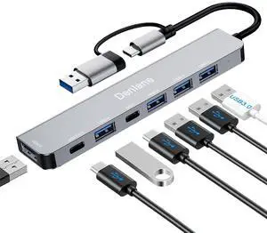 USB C Hub USB Hub 3.0 for Laptop, Upgrade 7 in 2 USB Splitter with USB-C & Multiport USB A Port Extender, USBC USB2.0 Dongle for PC/Computer/Laptop, Type C Mac/MacBook/Air/Pro/iPad/Tablet