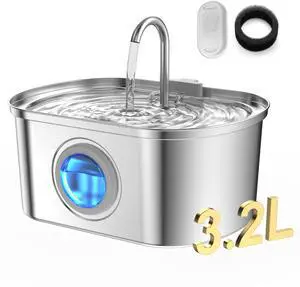 Stainless Steel Cat Water Fountain, 101oz/3L Pet Water Fountain for Cats Inside, Food-Grade Dog Water Fountain, Automatic Cat Water Dispenser