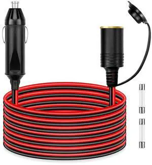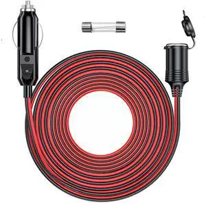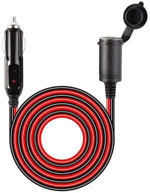 16.4ft 12V/24V Vehicle Cigarette Lighter Extension Cord 10A 120W Inline Socket for Tire Inflators Vacuums & Portable Tools Heavy Duty Lead Tough & Durable