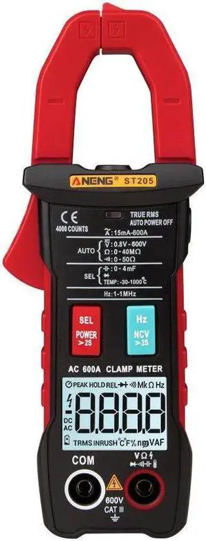 ANENG ST205 4000 Counts Full Intelligent Automatic Range True RMS Digital Multimeter Clamp Meter AC/DC Voltage NCV Resistance Auto Range Flashlight with Temperature Measurement - Red