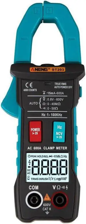 ANENG ST203 4000 Counts Full Intelligent Automatic Range True RMS Digital Multimeter Clamp Meter AC/DC Voltage NCV Resistance Auto Range Flashlight - Black