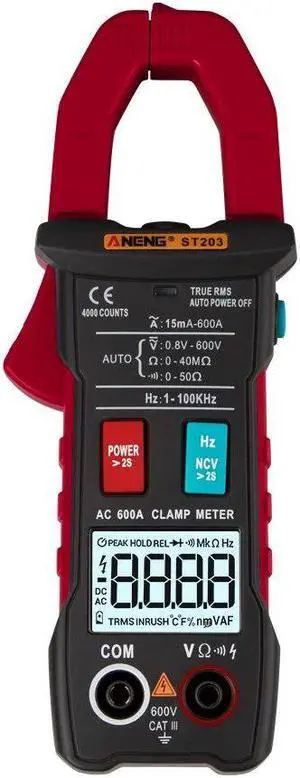 ANENG ST203 4000 Counts Full Intelligent Automatic Range True RMS Digital Multimeter Clamp Meter AC/DC Voltage NCV Resistance Auto Range Flashlight - Red