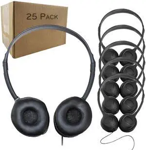 Soundnetic SN313 Bulk Classroom Headphones 25 Pack Over The Head Stereo Headphones with Leatherette Earpads, Black Ideal for Schools