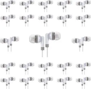 Maeline Bulk Earbuds 30 Pack Stereo Headphones Ideal for K-12-College Classrooms, Library, Travel, Gym, Museum, 3.5mm Plug, Tangle-Free Wired Earbuds for Phone, Tablet, Computer, Laptop, Jet Black