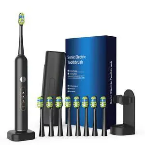P10S Sonic Electric Toothbrush 3 Modes Deep Clean & Whitening, 180-Day Battery Life, Cushioned Gum-Care Brush Head for Sensitive Teeth, Smart Timer, 2 Brush Heads (Blue)