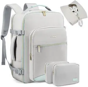 LOVEVEOOK Travel backpack for women, 40L Personal Item Travel Bags with 3 Packing Cubes, Waterproof Carry on Backpack for Airplanes Sports Luggage Backpack Large Hiking Backpack,Light grey-Mint green