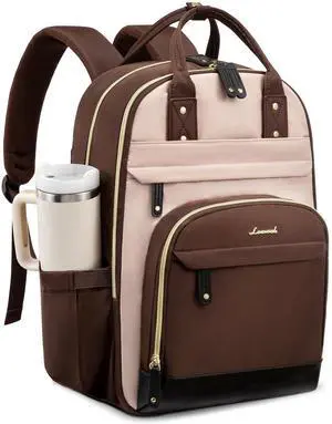 LOVEVOOK Laptop Backpack for Women with Giant Tumbler Holder,17 inch School College Book Bag Nurse Teacher Backpack,Waterproof Work Travel Backpack Purse Laptop Computer Bag,Coffee-Milk tea-Coffee