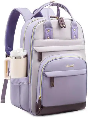 LOVEVOOK Laptop Backpack for Women with Giant Tumbler Holder,18 inch School College Book Bag Nurse Teacher Backpack,Work Travel Backpack Purse Laptop Computer Bag, Taro purple-Light purple-Purple